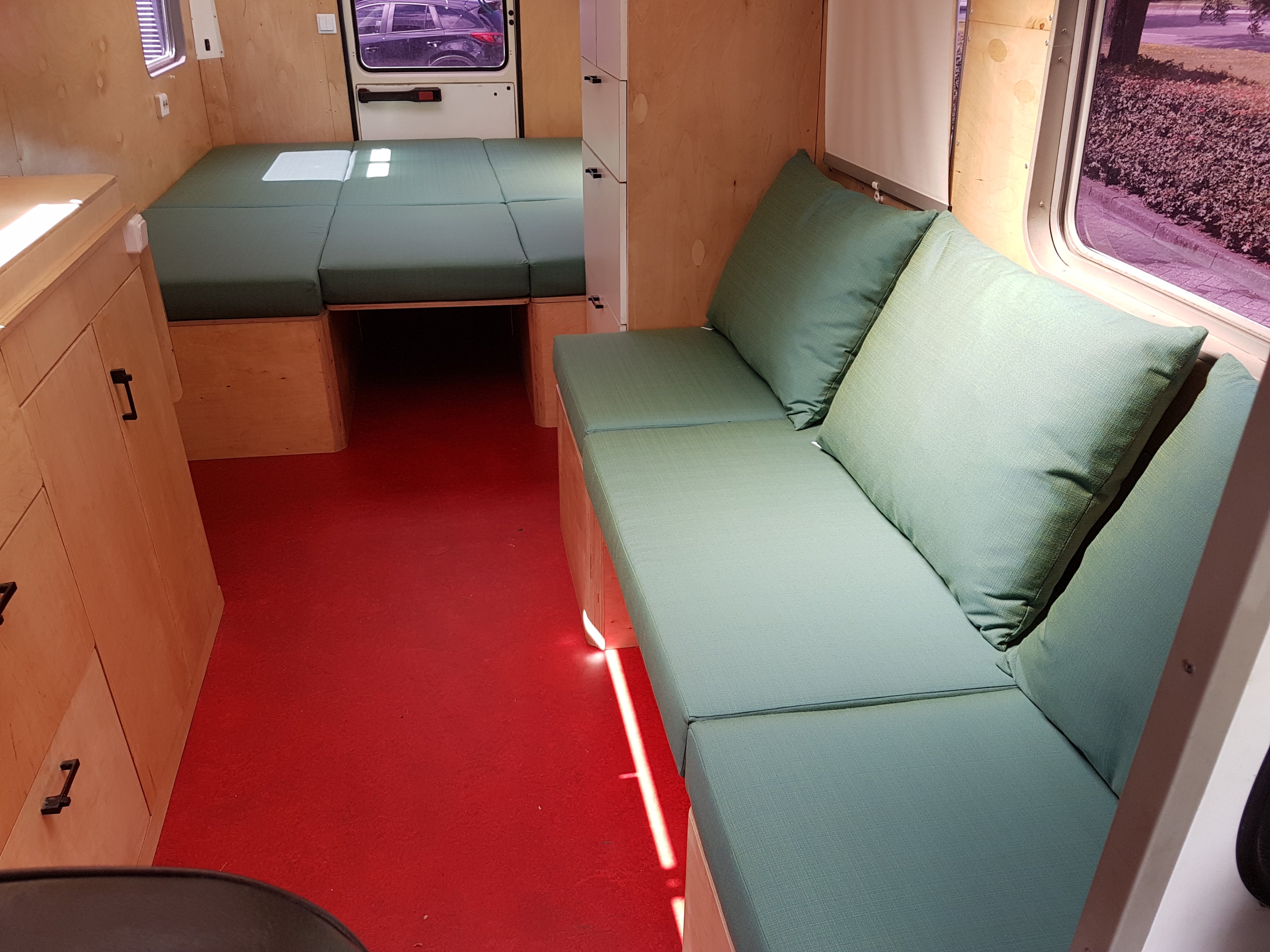 Schuine rugleuningen, afgeronde hoeken of onregelmatige indelingen? Wij maken elk kussen volledig op maat voor jouw camper of caravan.